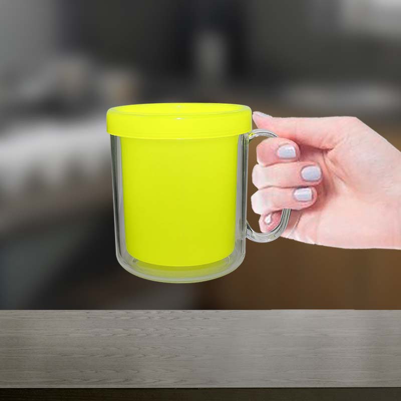 Kit 6 Canecas Térmica Cristal Amarelo Neon 300mL Plástico