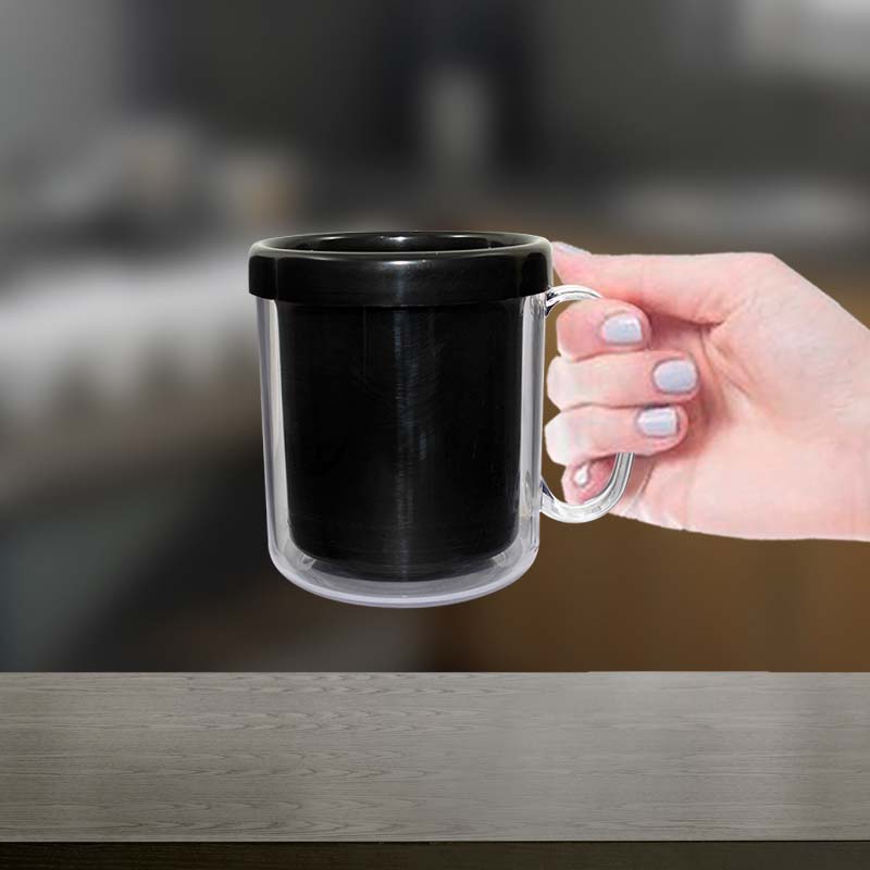 Kit 6 Canecas Térmica Cristal Preto 300mL Plástico