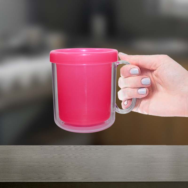 Kit 6 Canecas Térmica Cristal Rosa Neon 300mL Plástico