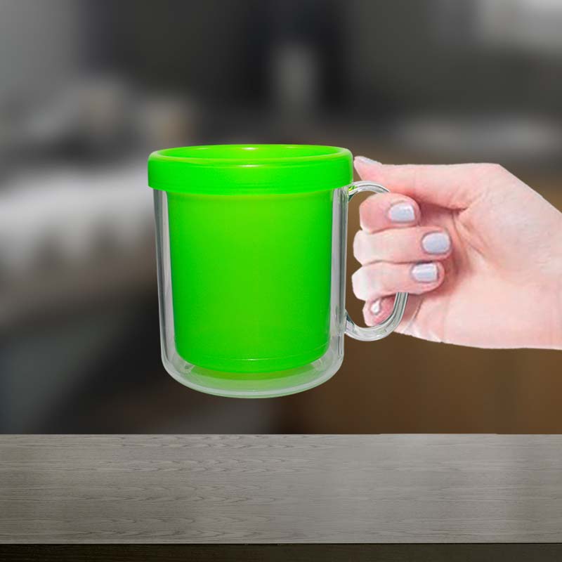 Kit 6 Canecas Térmica Cristal Verde Neon 300mL Plástico