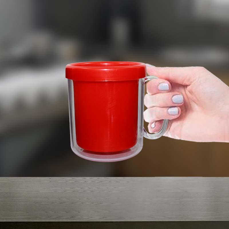 Kit 6 Canecas Térmica Cristal Vermelho 300mL Plástico