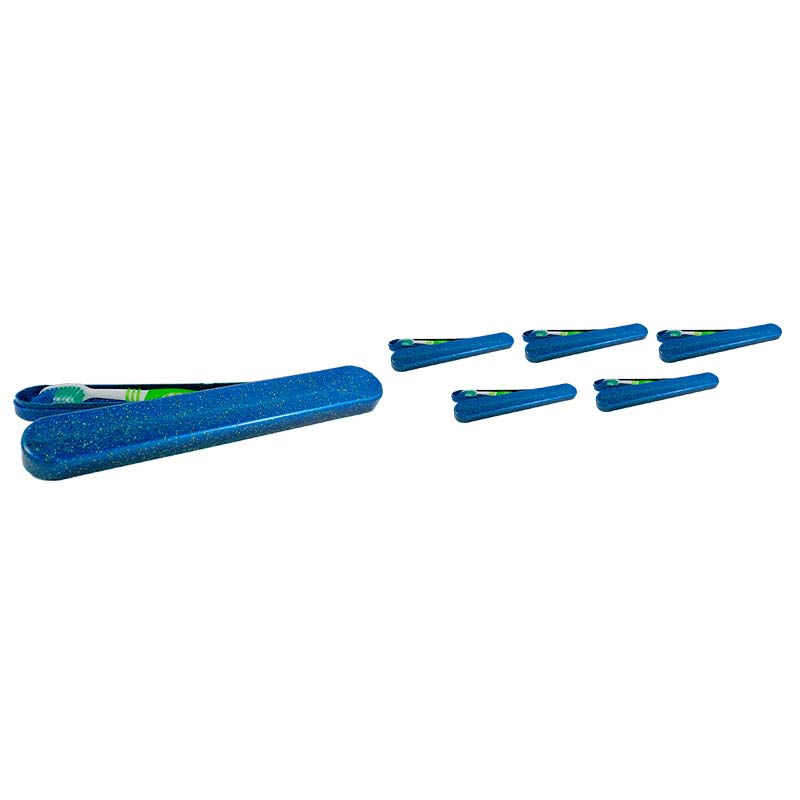 Kit 6 Porta Escova Dental Fibra Madeira Azul