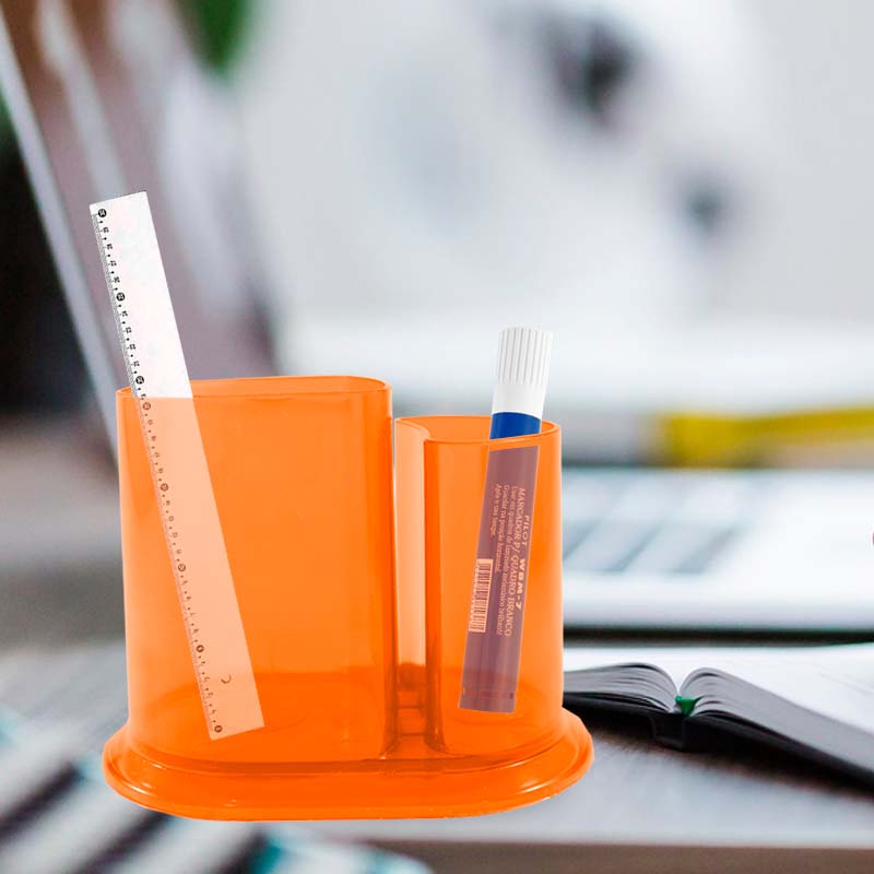 Kit 6 Porta Lápis Duo Cristal Laranja Neon Plástico