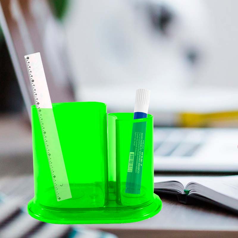 Kit 6 Porta Lápis Duo Cristal Verde Neon Plástico
