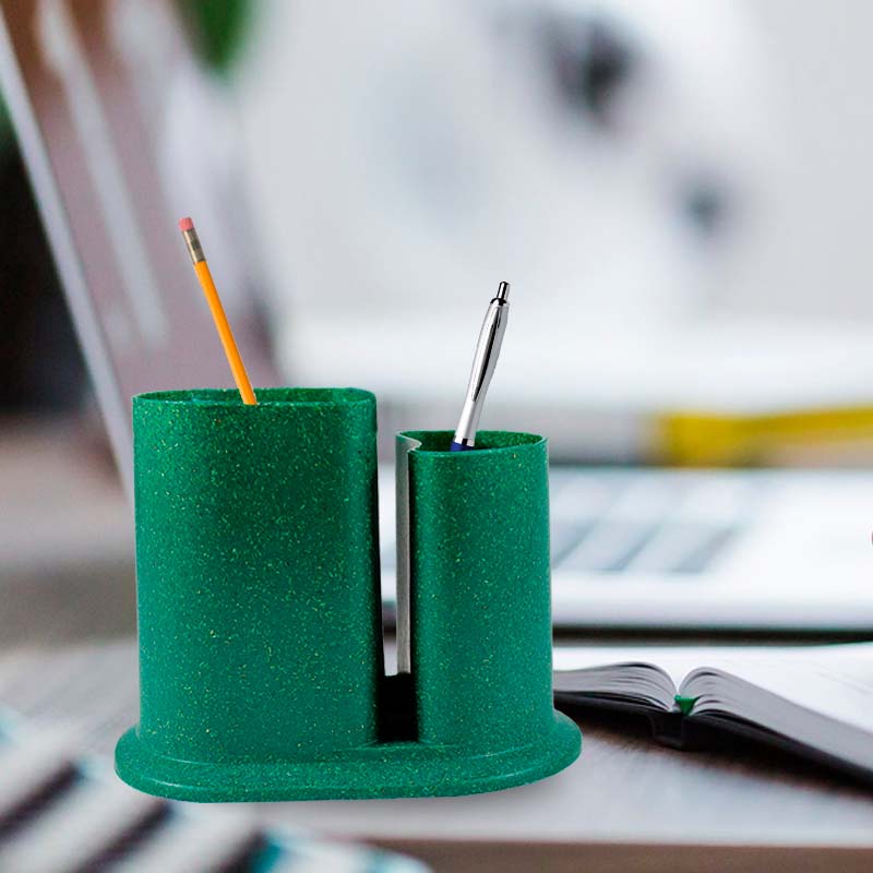 Kit 6 Porta Lápis Duo Fibra Madeira Verde