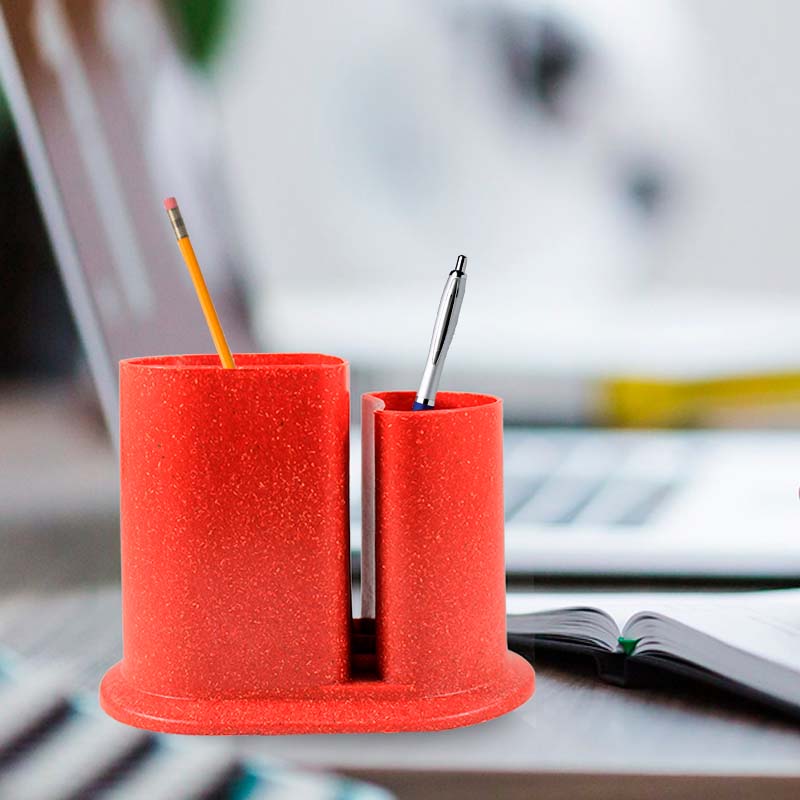 Kit 6 Porta Lápis Duo Fibra Madeira Vermelho