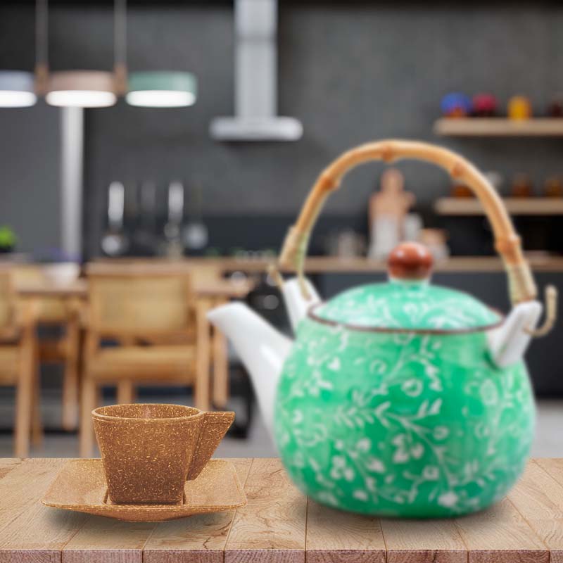 Kit 6 Xícara E Pires 50mL Fibra Madeira Green