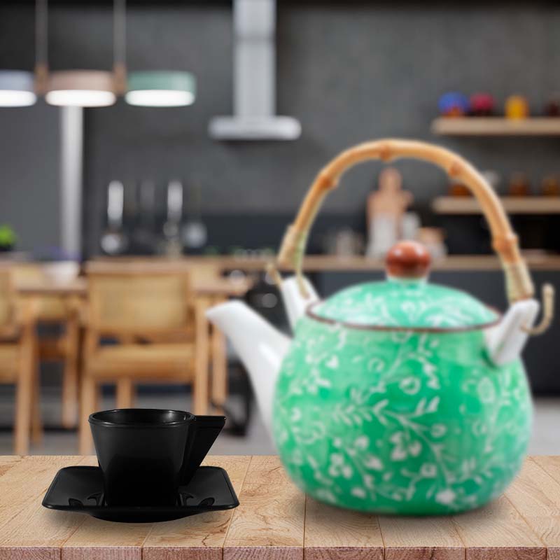 Kit 6 Xícara E Pires Preto 50mL Plástico