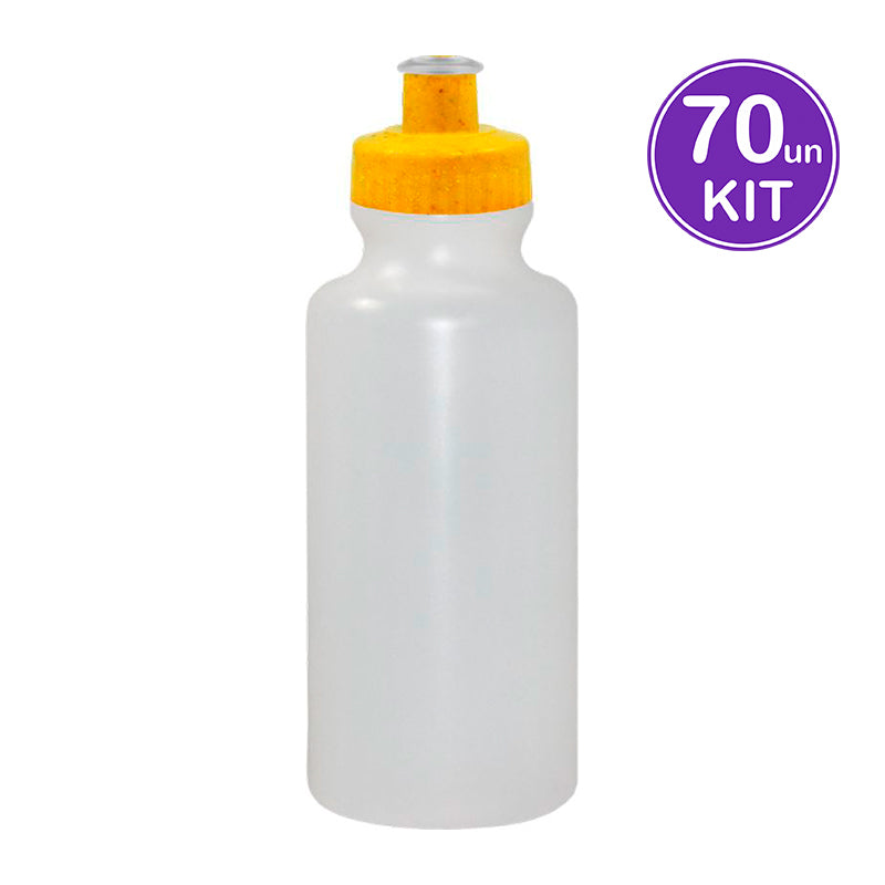 Kit 70 Squeezes 550Ml Tampa Ecologica Madeira Green Fibra Amarelo